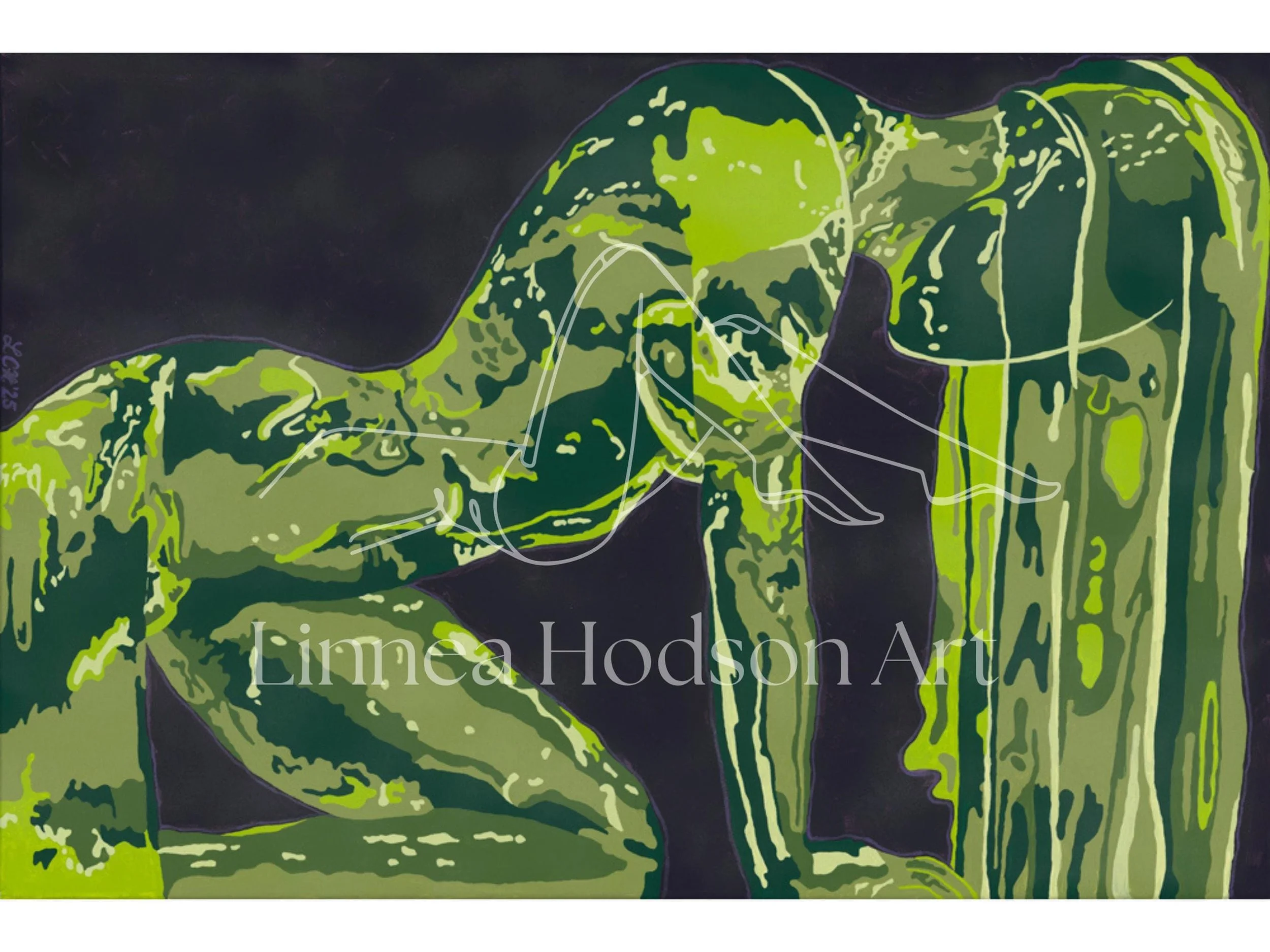 A print of my original painting, featuring acrylic on canvas. She represents the movement of life…some days spent crawling, many filled with emotion, but always evolving and morphing and in motion.